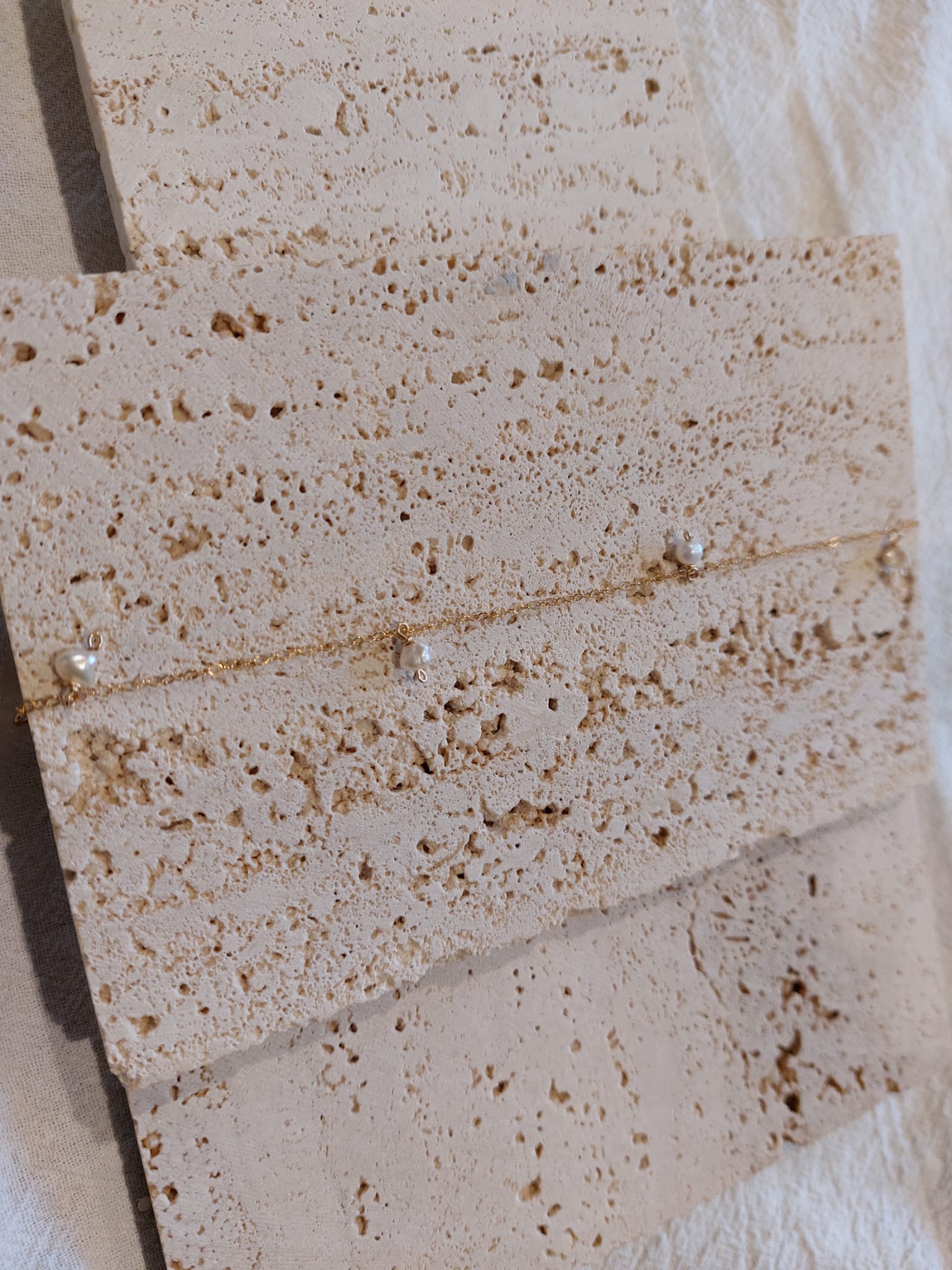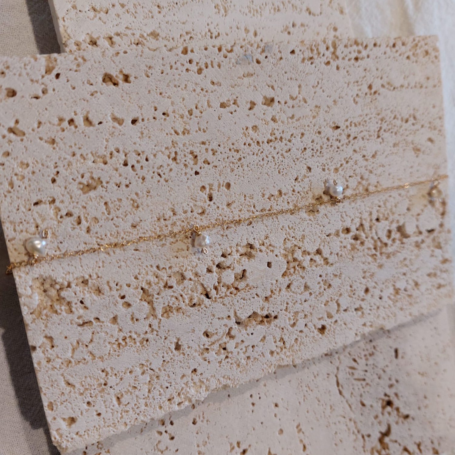 Add a touch of elegance to your wrist with our Hestia Pearl Bracelet. Featuring 4 seed pearls on a delicate 14k gold chain, it pairs perfectly with our Hestia Pearl Choker. Elevate any outfit with this timeless accessory.
