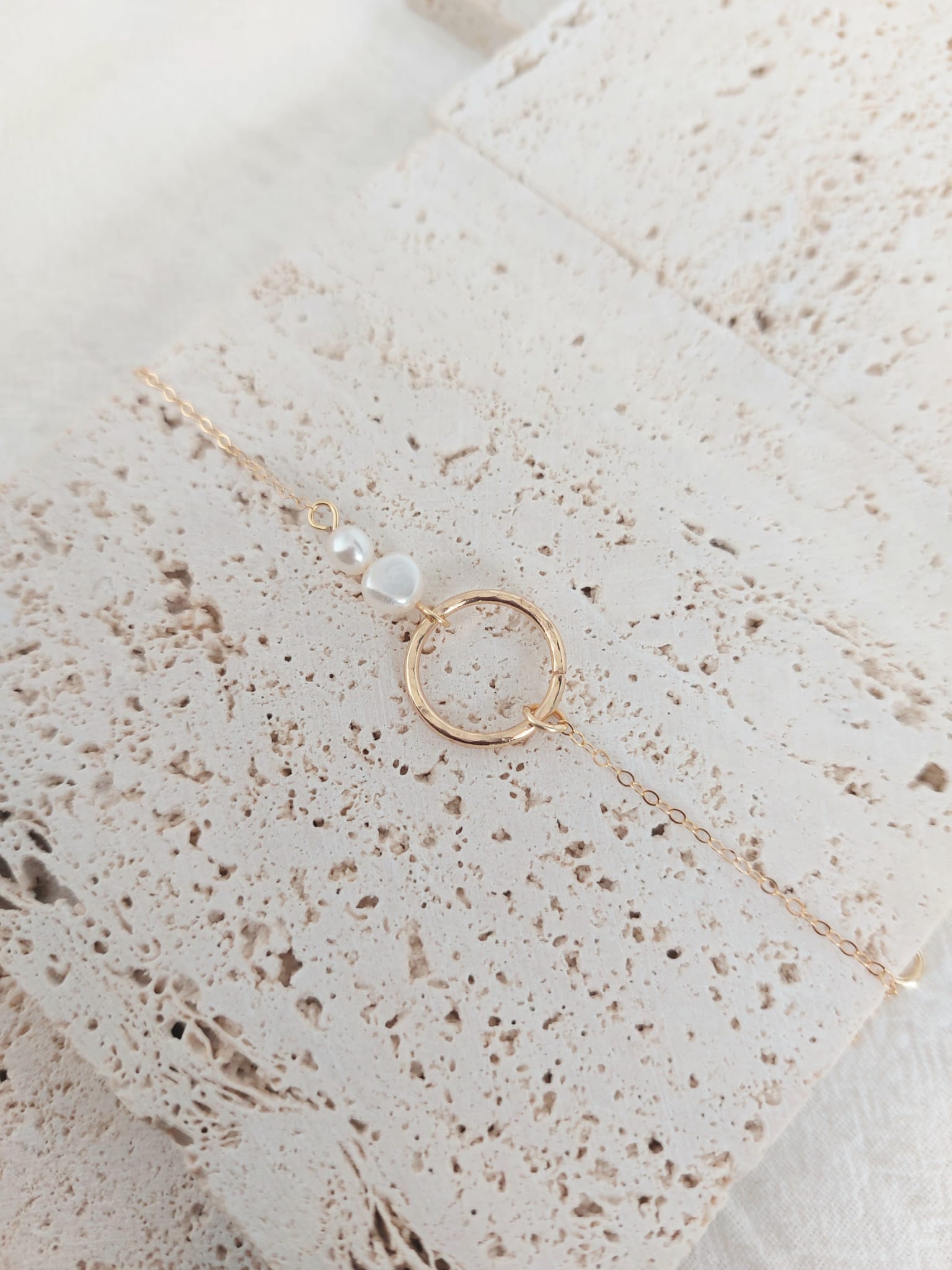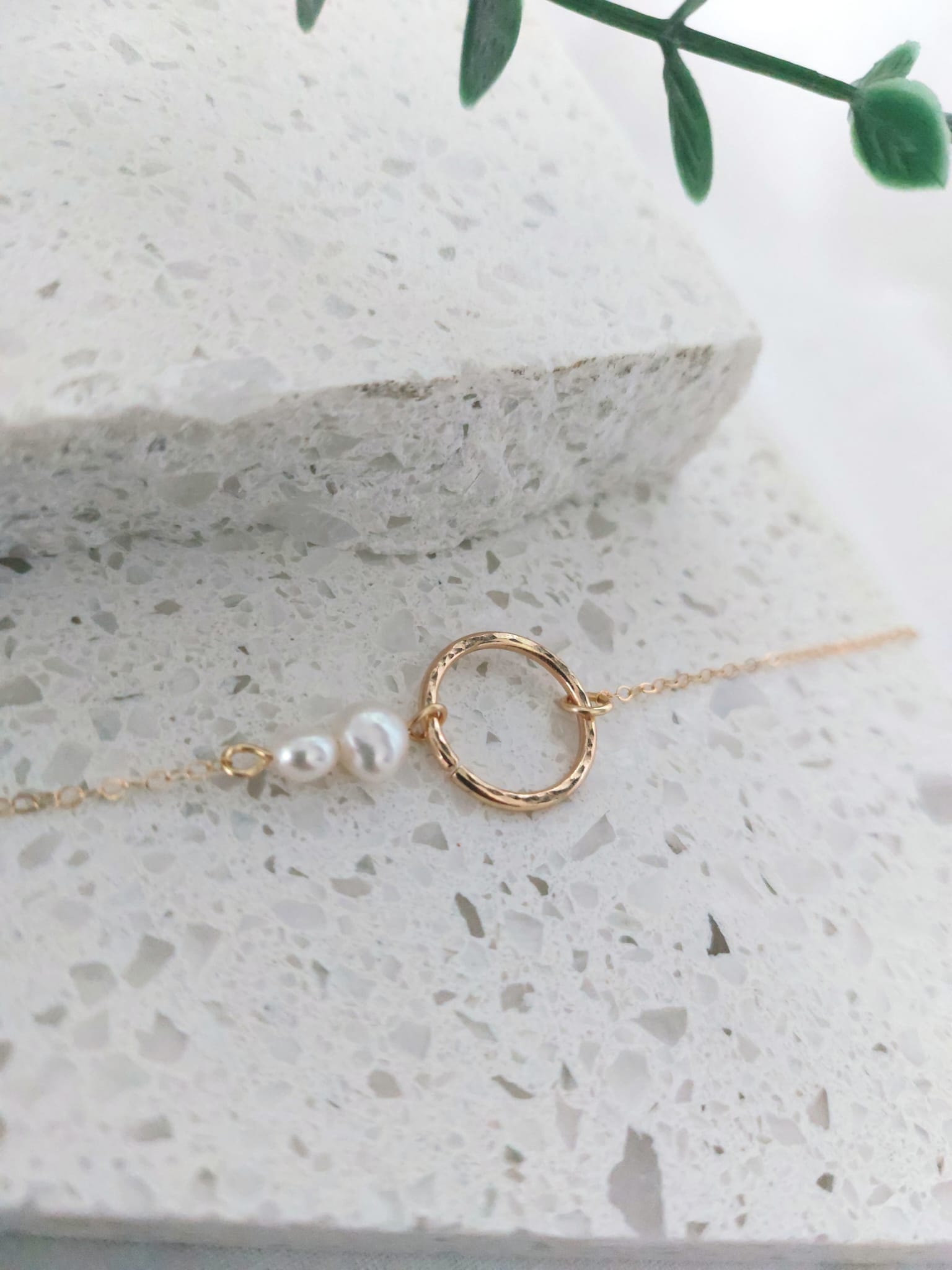 Take your style game up a notch with the Tatia Pearl Bracelet. Designed to perfectly complement our Tatia Necklace and Tatia Earrings, this elegant bracelet adds a touch of sophistication to any outfit. Wear it alone for a classic look or mix and match with other bracelets to create your own unique style. It's versatile, timeless, and oh-so-stylish. Order yours today and elevate your jewelry collection!